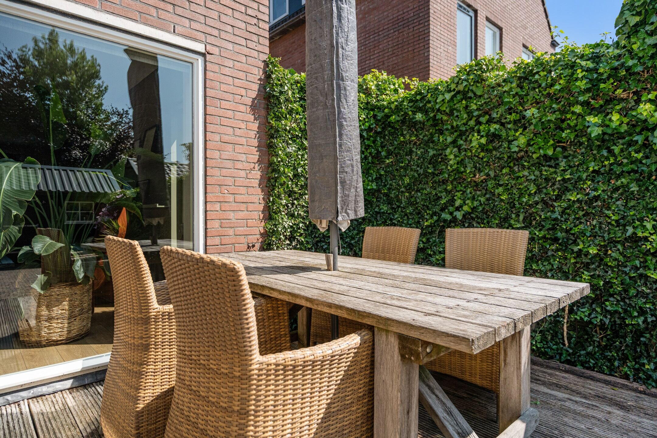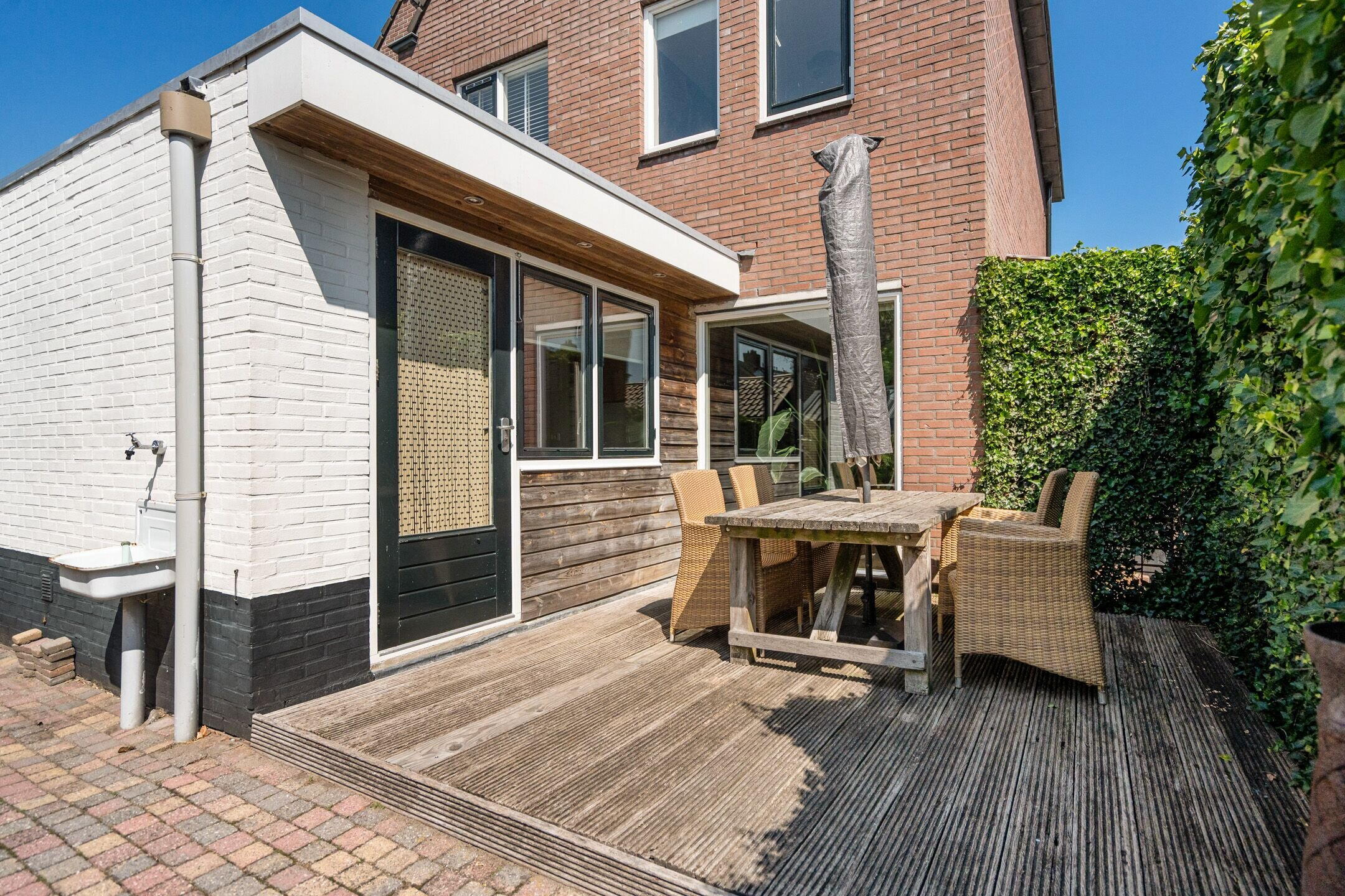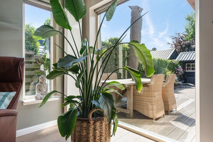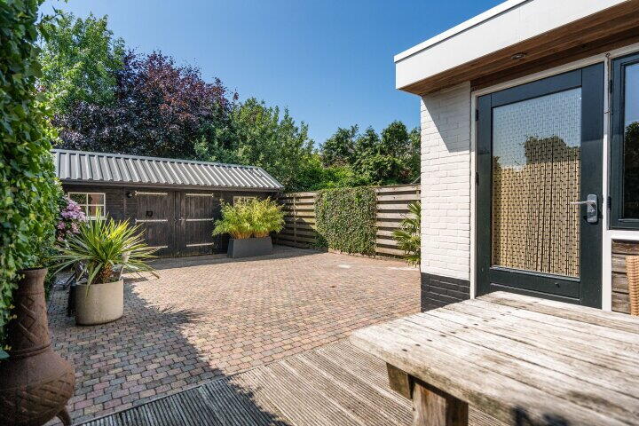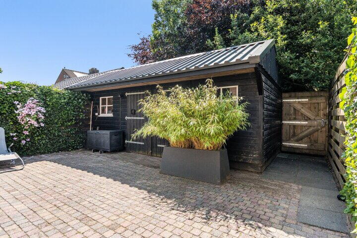 De besloten achtertuin op het zuiden biedt volop privacy en is tevens bereikbaar via een praktische achterom. In de tuin staat een ruime, geïsoleerde schuur (ca. 6 x 3 meter) met dak- en gevelisolatie, ideaal voor opslag, klusruimte of hobbygebruik. Aan de zijkant van de woning is recent een robuuste fietsenschuur gebouwd (ca. 1.30 x 5 meter) in dezelfde stijl als de schuur in de achtertuin. Hier passen met gemak 4 fietsen in!