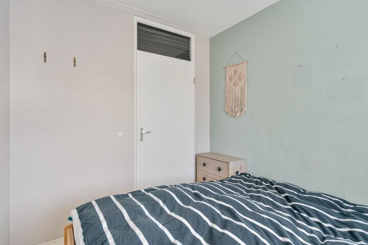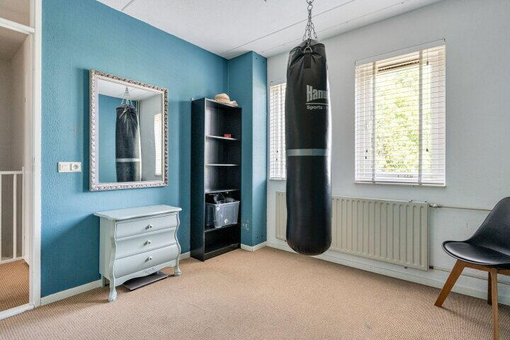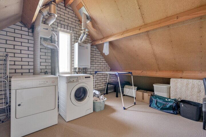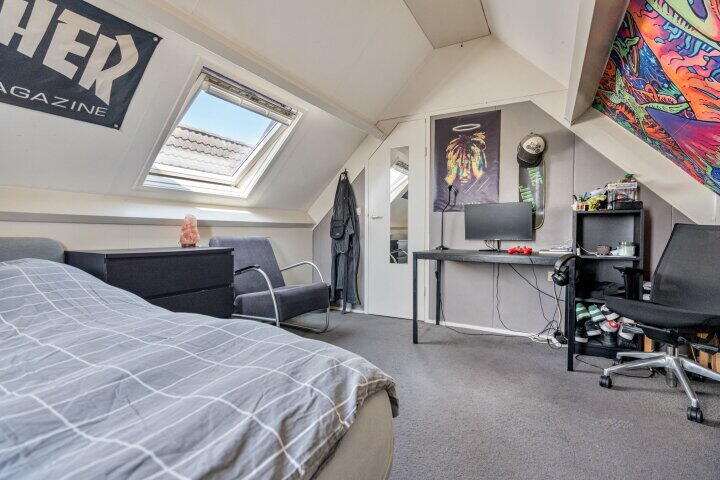 De tweede verdieping is bereikbaar via een vaste trap en bestaat uit twee afzonderlijke ruimtes. Er is een extra slaapkamer gerealiseerd, voorzien van een groot dakraam dat zorgt voor veel daglicht. Aan de andere zijde is een ruime multifunctionele kamer met de aansluitingen voor witgoed, de opstelplaats van de cv-ketel en voldoende bergruimte. Deze ruimte is ook geschikt als werk-, hobby- of logeerkamer.